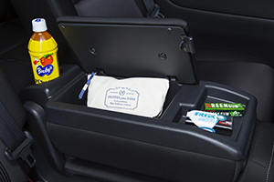 第2排座椅的扶手設有飲料架與小型物品收納盒。且此扶手可向前滑動,移動至駕駛座旁。
