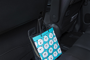 駕駛座與副駕駛座的椅背部分,設有能吊掛袋子等物品的掛鈎。