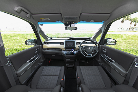 前車窗採斜向設計,由駕駛座往上看時的視野極佳。此外,左右側的三角窗等配備,亦有助於擴大視野。