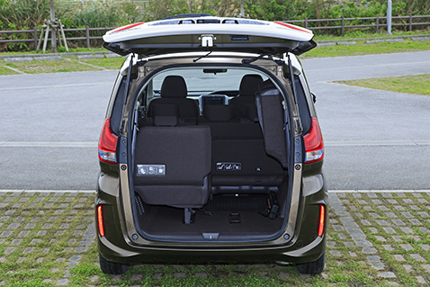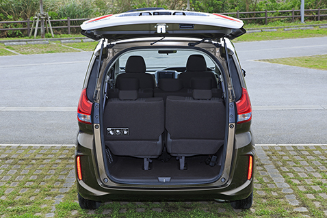 第3排座椅可向左右掀起,製造出更多裝載行李的空間。此時的乘車人數上限為5~6人行李廂的型態會因車輛而改變。