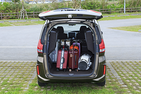 乘坐6或7人時,後行李廂部分僅能放入1~2個S號行李箱。